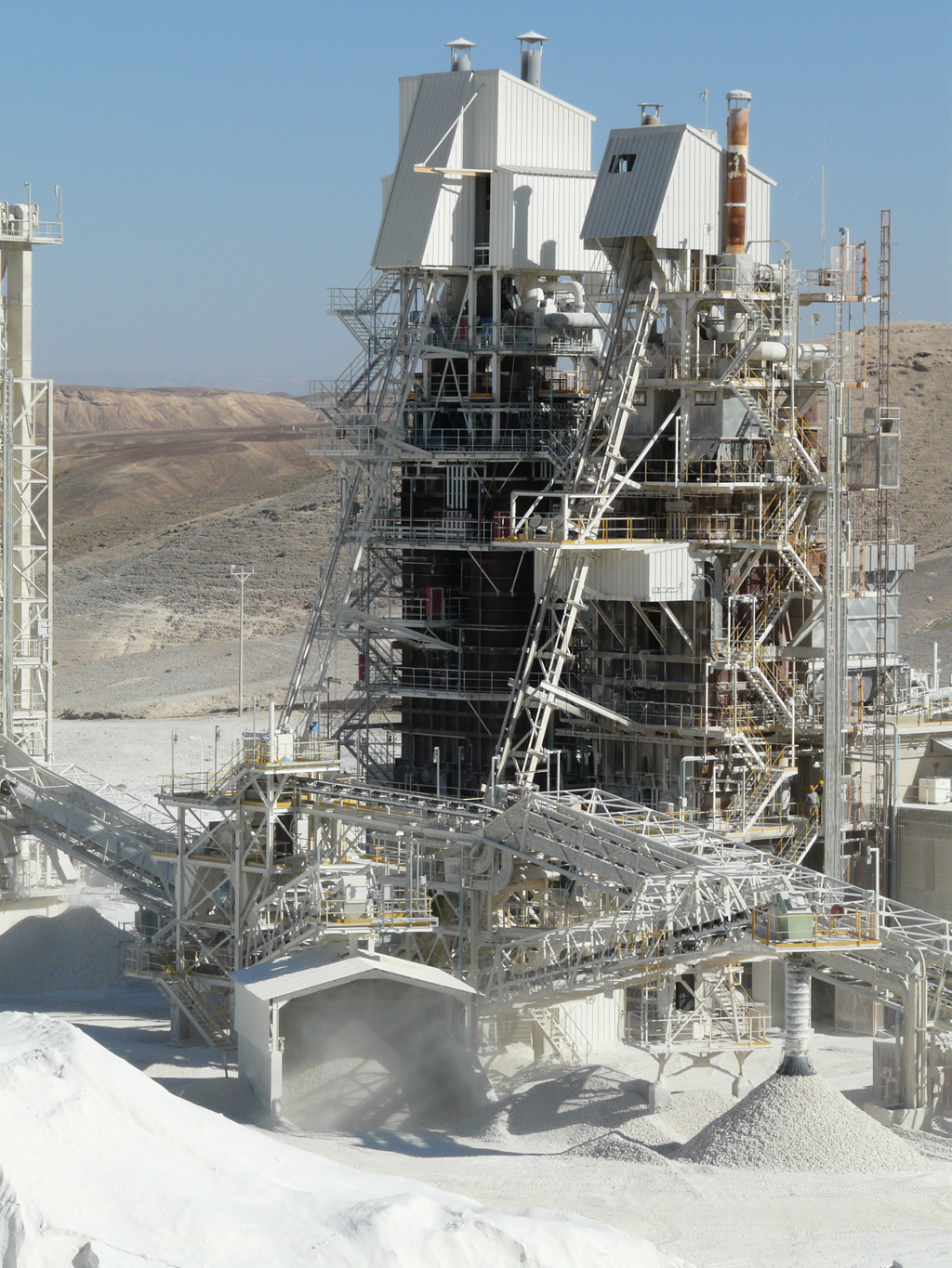 מגדל עיבוד תעשייתי עם שלדת מתכת ומסועי חומרים בסביבה מדבריתמבט רחב על מתקן תעשייתי המוקף משקעי מינרלים לבנים וגבעות מדבריותמתקן לעיבוד מינרלים עם מכלי אחסון, מסועים ומגדלי מבנה הפועל בנוף מדברימבט אווירי על מערכות מסועים וציוד תעשייתי הפרוסים באתר מדברי חולישורת מכלי אחסון תעשייתיים לבנים וגבוהים הנתמכים במסגרות מתכת תחת שמיים בהיריםמסועי חומרים המעבירים חומר מעל ערימות מינרלים לבנות באתר תעשייתימתקן תעשייתי עם מכלים ומבני עיבוד הממוקם לצד עצי דקל באזור מדברימבט אווירי מגובה רב על מחצבה ופעילות עיבוד החצובות בנוף מדבריתקריב של מכלים תעשייתיים ומבני מתכת המכוסים בשאריות מינרלים לבנותמחצבה פתוחה עם קירות סלע מדורגים ושכבות אבן בהירות חשופותמתקן תעשייתי לעיבוד מינרלים עם מסועים ומגדלי עיבוד בנוף מדבריתקריב של מסוע ומגדל עיבוד המטפלים בחומר מינרלי לבןמבני מתקן עיבוד עם מכלים ומערכות מסועים הפועלים באור יוםמסוע המעביר חומר מינרלי מרוסק בתוך מתקן תעשייתיחדר בקרה עם מפעילים העוקבים אחר תהליכים תעשייתיים במסכיםמתקן תעשייתי לעיבוד מינרלים עם מסועים ומגדלי עיבוד בסביבה צחיחהמבט רחב על אתר חציבה פתוח עם מדרגות חפירה בנוף מדברימבט קרוב על מחצבה גדולה עם שכבות מינרלים חשופות ונתיבי חציבהמתקן תעשייתי לעיבוד מינרלים בשעות הלילה עם מבנים מוארים ותנור פועלמתקן תעשייתי לעיבוד מינרלים עם מסועים ומגדלים הממוקם בנוף מדברימבט אווירי על מחצבה גדולה ואתר לעיבוד מינרלים המוקף בשטח מדברי סלעי
